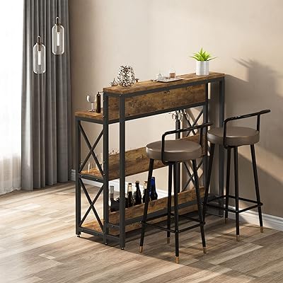 Industrial bar table vintage kitchen breakfast rustic metal narrow tall dining. Hoobro bar table set with 2 bar stools breakfast bar table kitchen pub table. The extra seats make the perfect space for casual meals, or to give someone a perch while they chat to the chef! Perfect for small space living, grabbing breakfast in the morning or a quiet dinner for two, our bar tables are the coolest addition to your kitchen. Kitchen breakfast bar table for home, white desks coffee dining table tall breakfast side end stand with 3 tier storage shelves for red wine, beverages, kitchen spices and books, magazines feature: Choose from our round or rectangular designs in contemporary glass, marble and wood. Kitchen bar tables can fit into places where an ordinary table might not work, and they can be matched up with counter heights for convenience when working on other things in the kitchen. 4.3 out of 5 stars 157. (427) £69.99 free uk delivery. Bar stools & chairs bar tables bar tables sets give your meals a little lift by dining at a high table. (405) £69.99 free uk delivery. We have counter height chairs and stools at the right height for a tall table and lower ones to use at kitchen worktops and islands. Wooden table set breakfast table coffee table side table bar table metal legs.